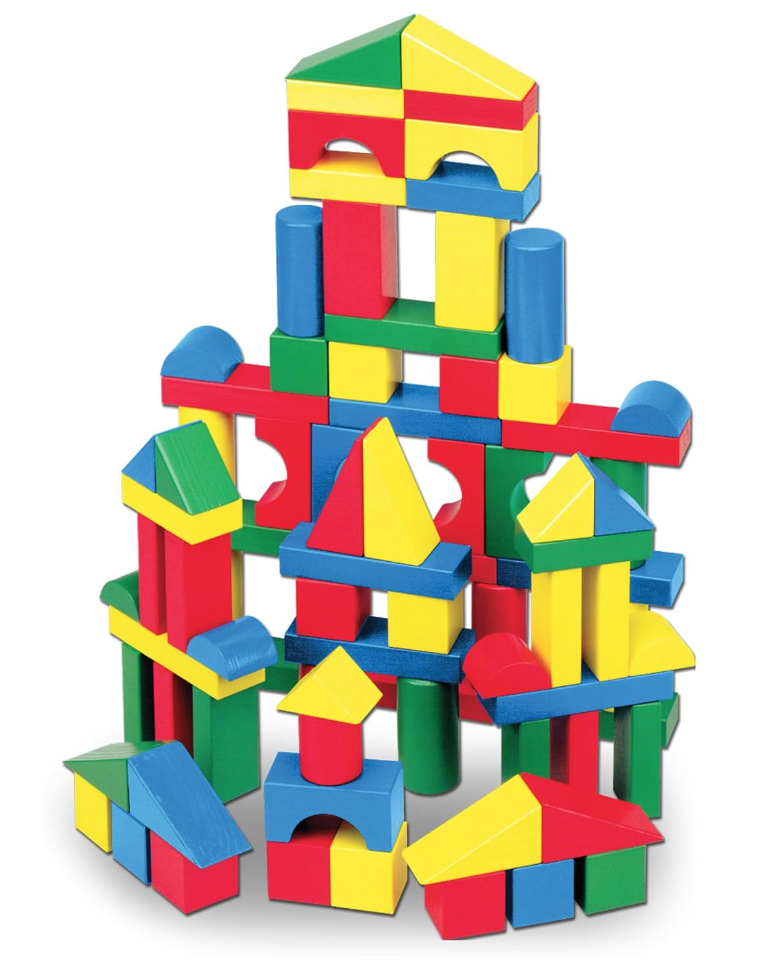 These 100-piece wooden block set by Melissa & Doug makes the perfect first block set for toddlers.