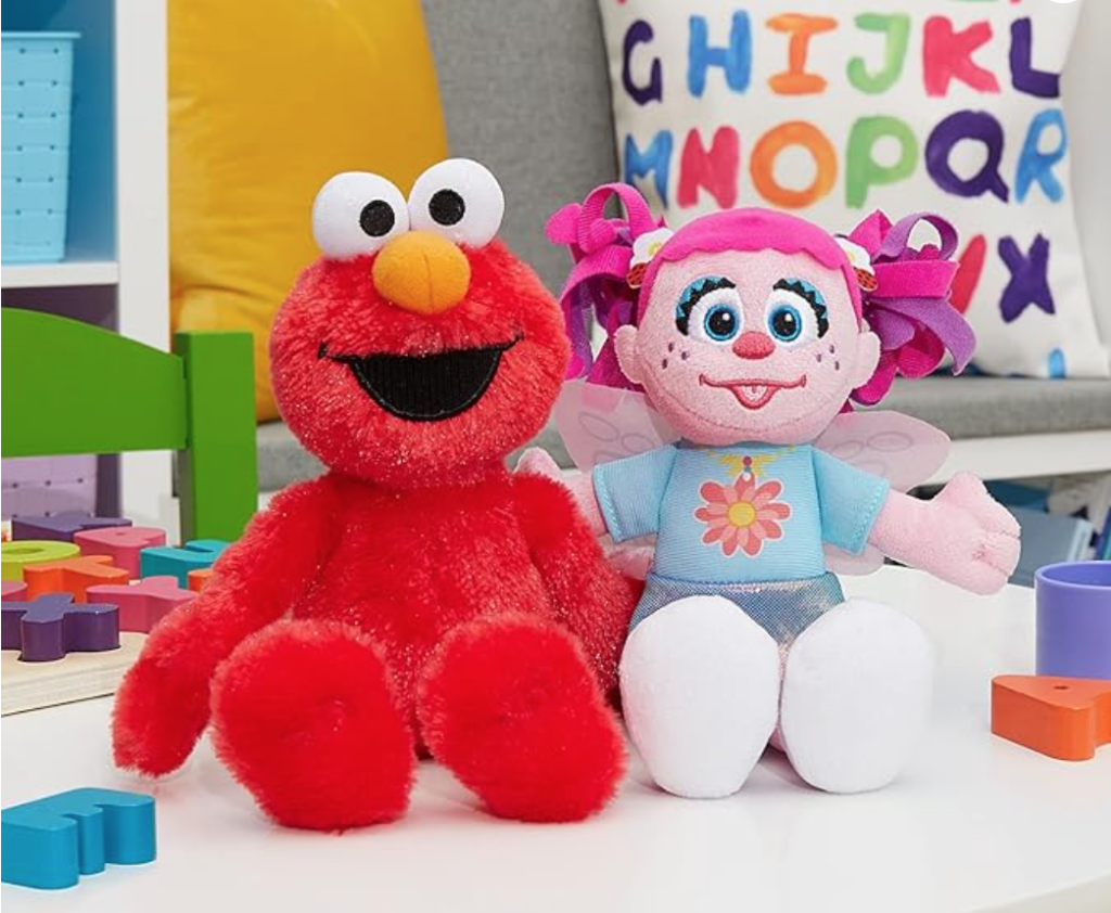 One super fun and cute part about toddlers is they like to start playing make believe. Keep your toddler entertained with a plush stuffed animal like Sesame Street’s Elmo and Abby and Little Tikes Shopping Cart to push them around in.