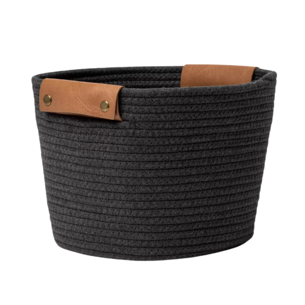 Gray Charcoal Coil Rope Basket | White 4 Cube Organizer