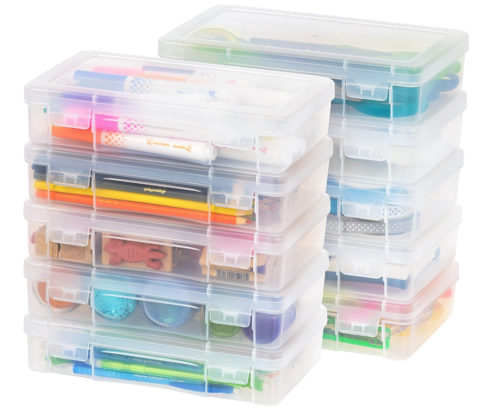 - #5: Use storage bins, containers or baskets like the ones below. These can be stored in a handy cube shelf or own the floor.
